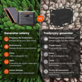 Podłączenie paneli solarnych do stacji zasilania zajmuje zaledwie minutę. O wiele prostsze i wygodniejsze od standardowych generatorów.